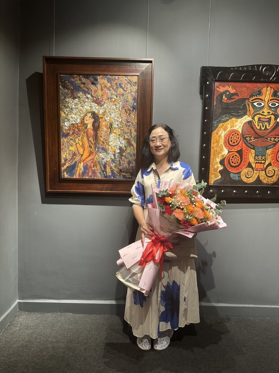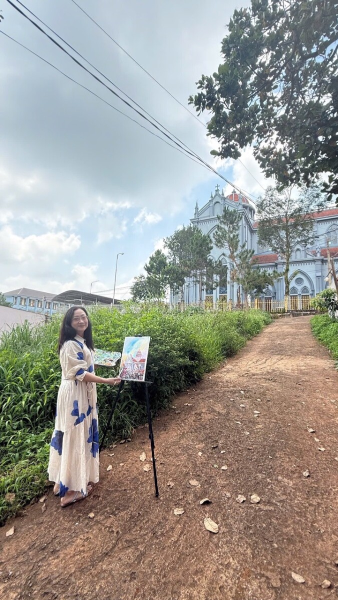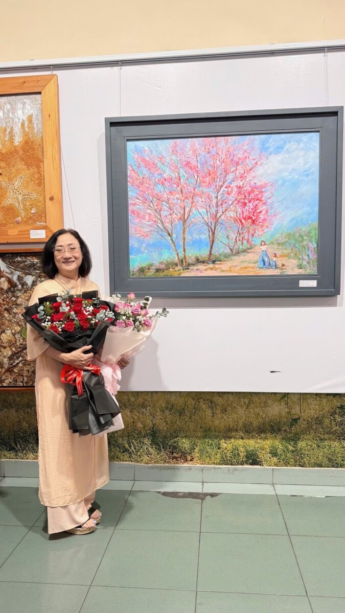 Các tác phẩm nghệ thuật của cô tập trung thể loại màu nước, sơn dầu và tranh sơn mài VN truyền thống.